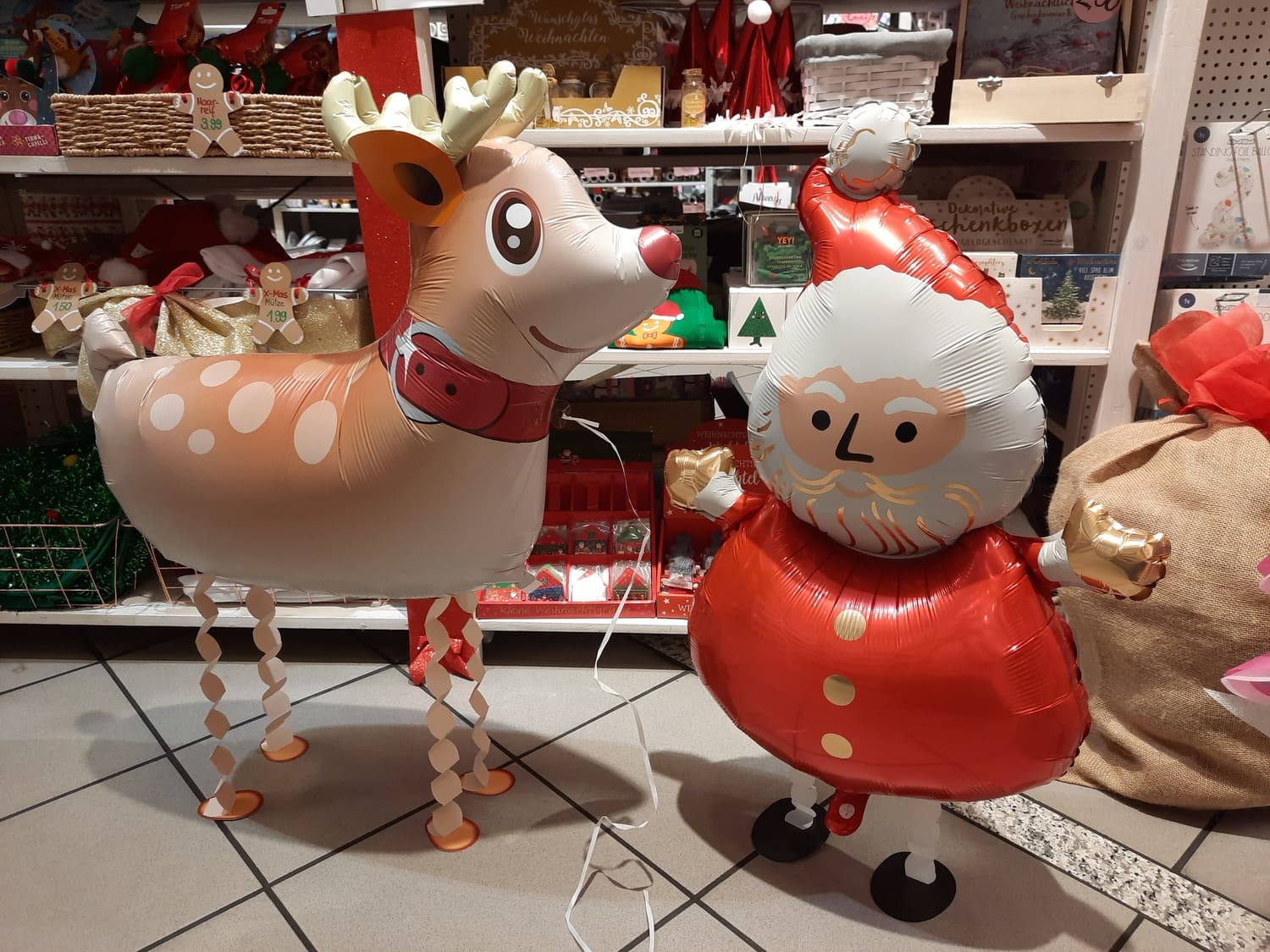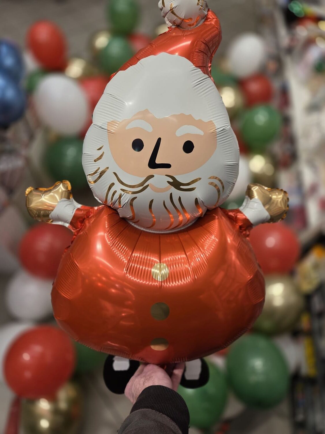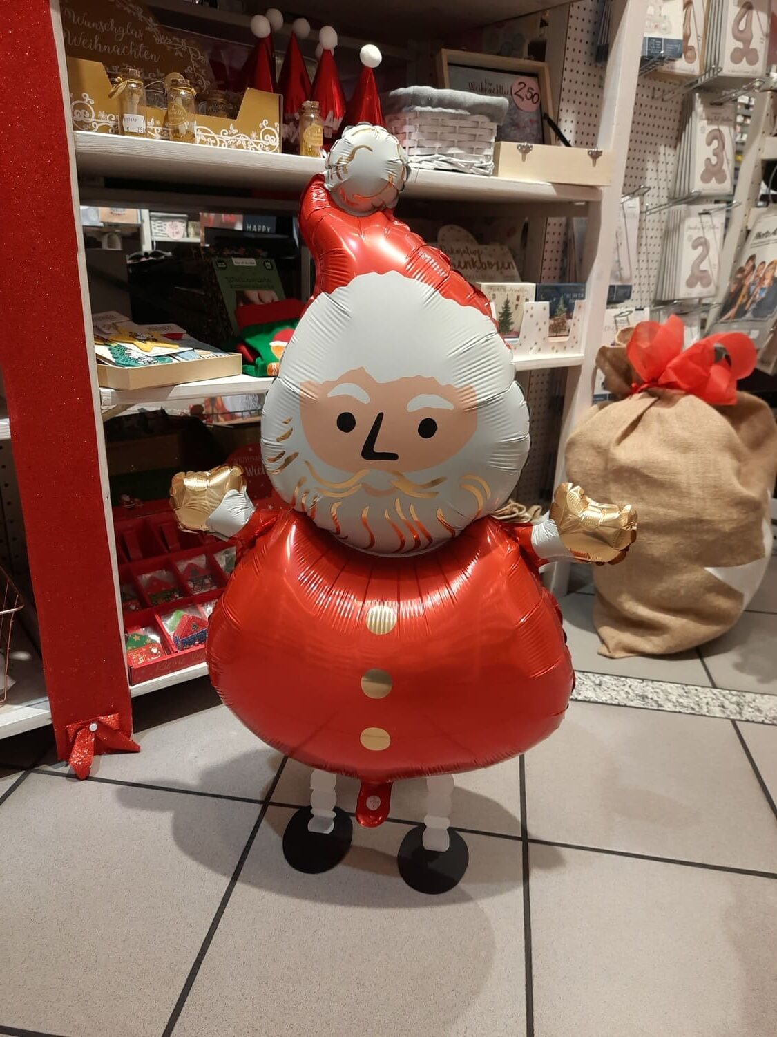 Airwalker Santa Claus. Größe etwa 60 cm. Schwebezeit ca. 5-7 Tage. Bleibt am Boden stehen. Bei Abholung mit Helium gefüllt.