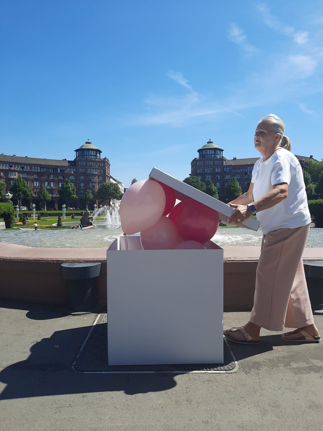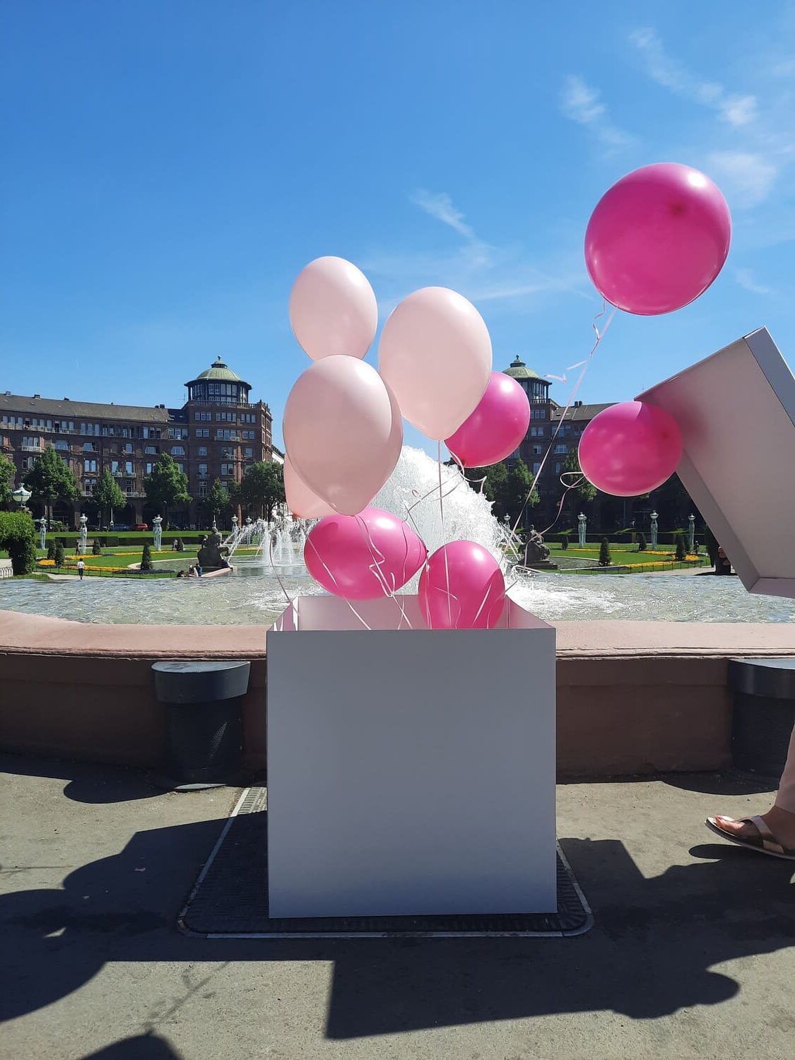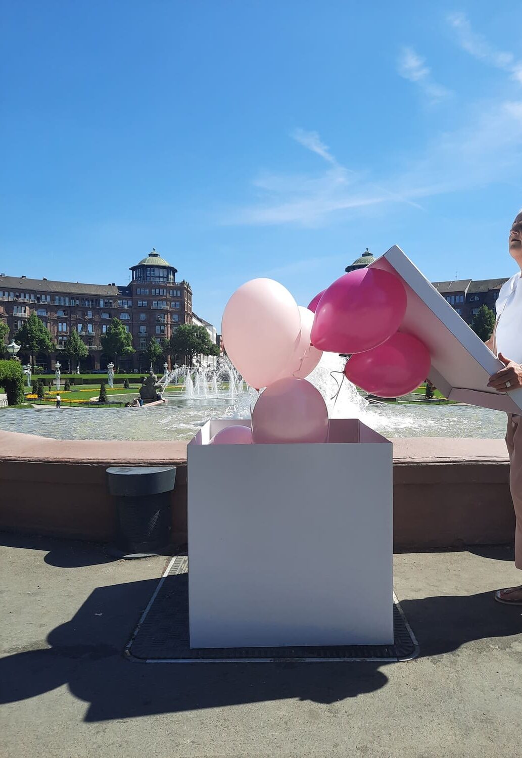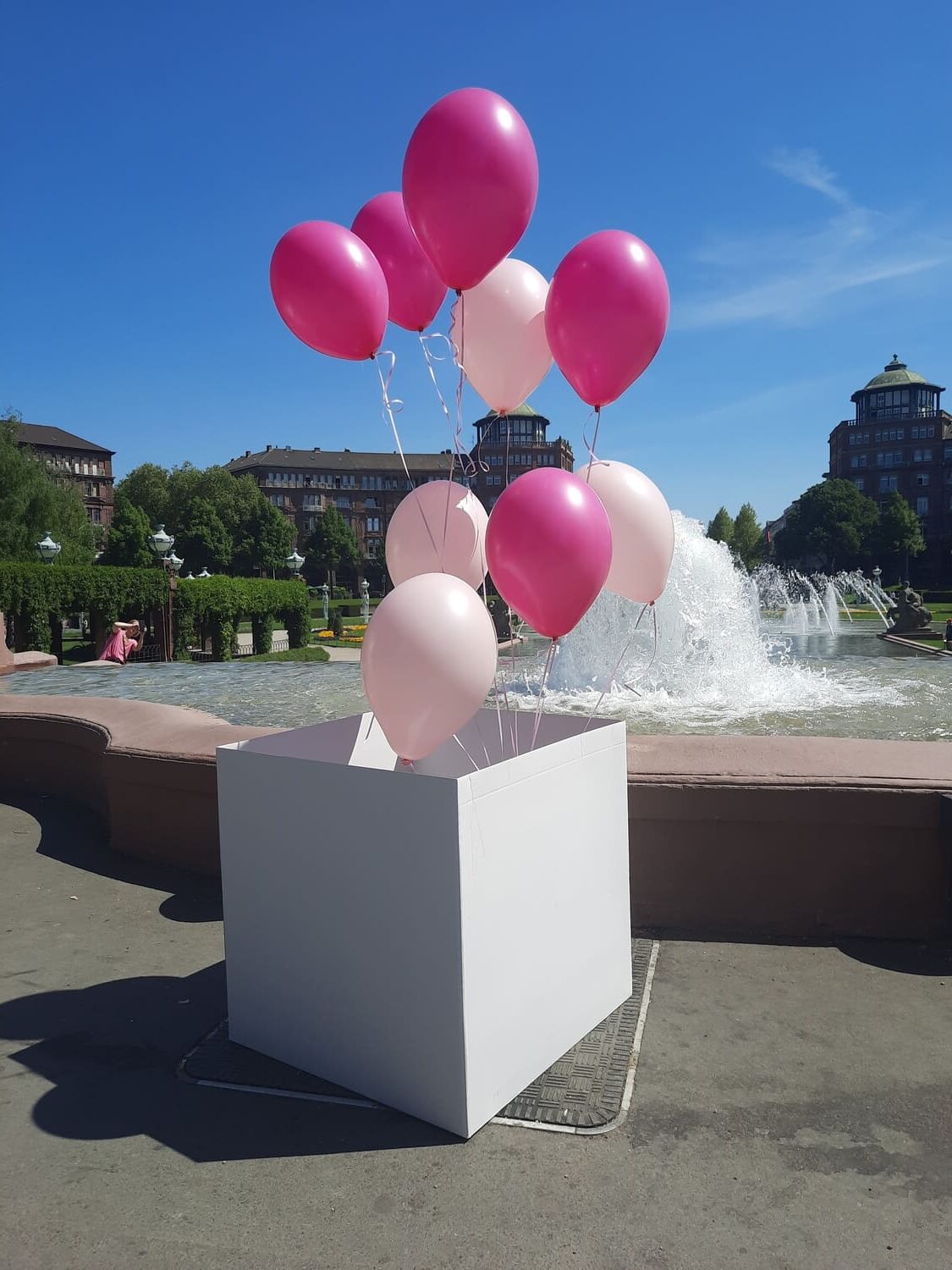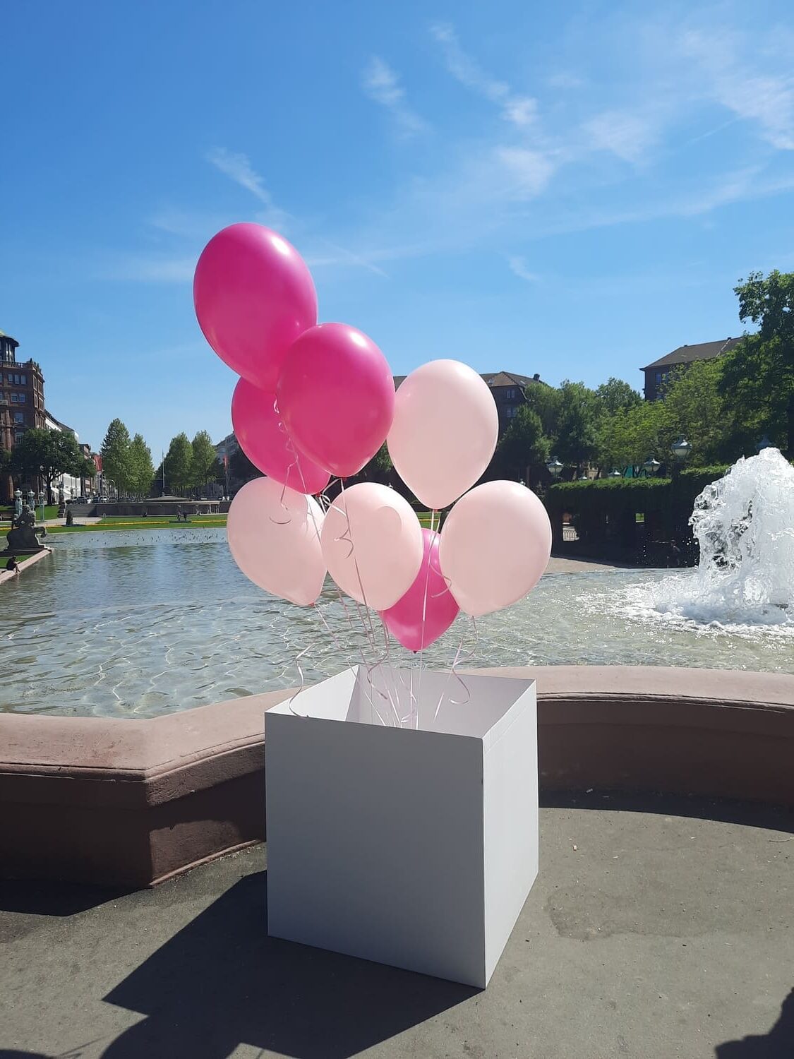 Infos zur Abholung: Die Box hat eine Größe von 70 x 70 cm und ist mit 10 Helium Ballons gefüllt. Die Ballons haben eine Schwebezeit von ca. 5 Tagen und sollten vor Hitze und Kälte geschützt werden. Wir empfehlen eine zeitnahe Abholung zum Gebrauch. Bitte sorgen Sie für ausreichend Platz beim Transport.