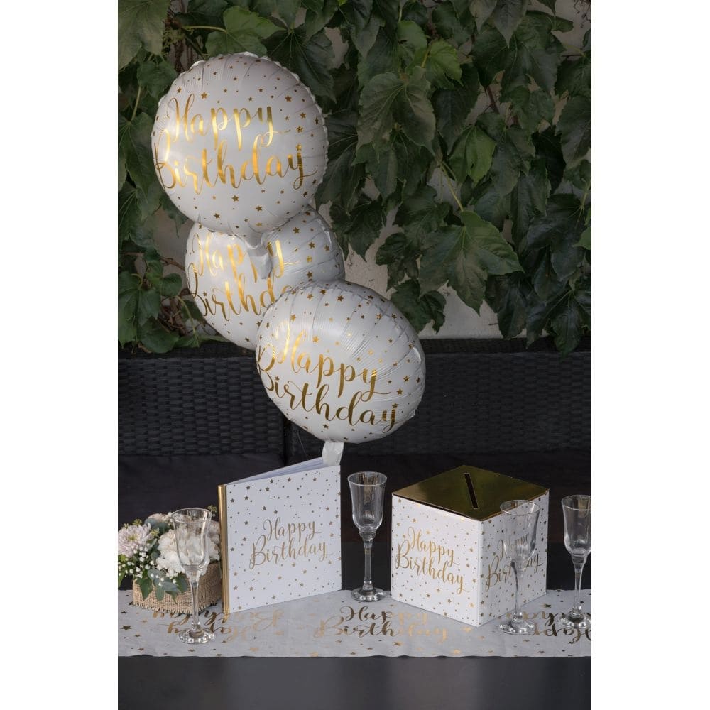 Folienballon Happy Birthday Weiß und Gold